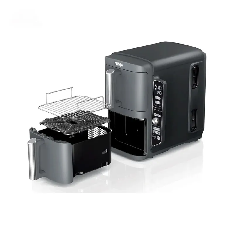 آیا تا به حال برایتان پیش آمده برای مهمانان زیادی بخواهید چندین نوع غذا درست کرده و بدون اینکه زمان زیادی را صرف پخت و پز کنید، بیشتر از دورهمی هایتان لذت ببرید. سرخ کن دوقلو نینجا مدل SL401 یکی از محصولات بسیار کاربردی و مفید در هر آشپزخانه است و با طراحی دو طبقه روی هم که هر طبقه نیز با توری به دو بخش جهت طبخ غذاهای متفاوت تبدیل شده است، امکان تهیه همزمان 4 نوع غذای خوشمزه و متنوع را فراهم کرده است.